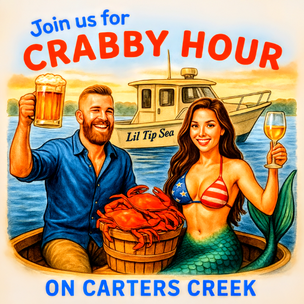 “Crabby Hour” is a 2 hour cruise aboard the Lil Tip-Sea that departs from the Tides Inn Marina on the historic and picturesque Carters Creek in Irvington VA.